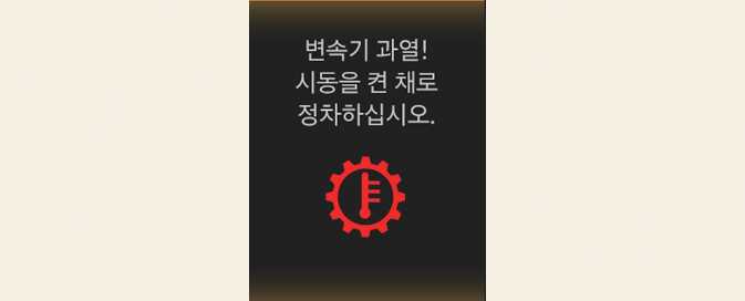 변속기 오일 온도가 높으면 클러스터에 경고 문구를 표시합니다.