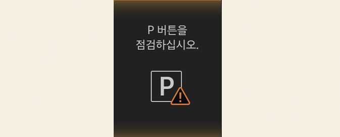 「P」(주차) 전환 기능에 이상이 있을 때 표시창에 경고 메시지가 나타납니다.