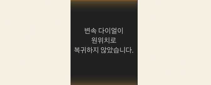 변속 다이얼 주변에 물건이 놓여져 있는지 확인하고, 지속적으로 경고 메시지가 표시될 경우 자사 직영 서비스센터나 서비스협력사에서 점검을 받으십시오.