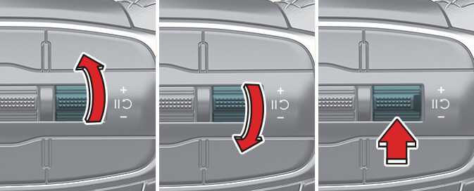 「+」 스위치를 올리거나 「-」 스위치를 내리면 수동 속도 제한 보조의 속도가 현재 클러스터의 속도로 설정됩니다. 「