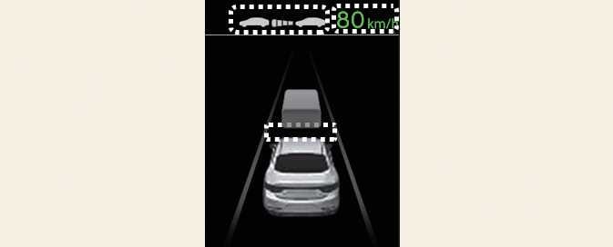 가속 페달로 일시적으로 가속할 때는 전방에 차량이 있어도 속도와 차간거리가 자동으로 조절되지 않으므로 주의하십시오.