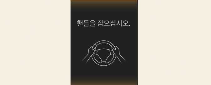 주행 상황에 따라 핸즈오프 경고문이 늦게 표시될 수 있습니다. 항상 스티어링 휠을 잡고 주행하십시오.