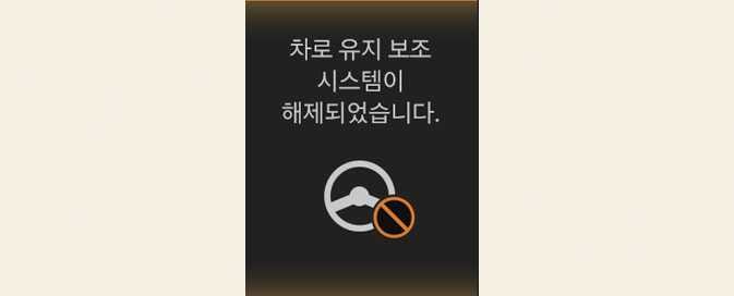 계속해서 스티어링 휠을 잡지 않을 경우, 차로 유지 보조가 자동으로 꺼집니다.