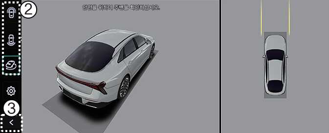 서라운드 뷰 모니터 화면의 뒤로 가기 버튼(3)을 누름