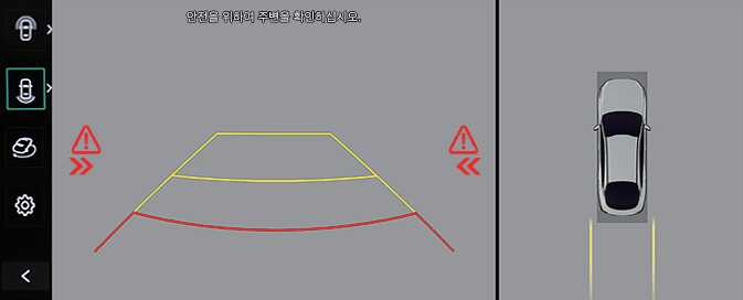 인포테인먼트 시스템 화면의 후방 영상에도 경고가 표시됩니다.