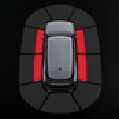 측방 초음파센서가 사람 혹은 물체를 감지하면 클러스터 또는 인포테인먼트 시스템 화면에 거리별 표시등을 표시합니다.