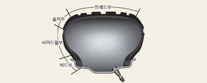 트레드부: 타이어가 노면과 접촉하는 두꺼운 고무층 부분