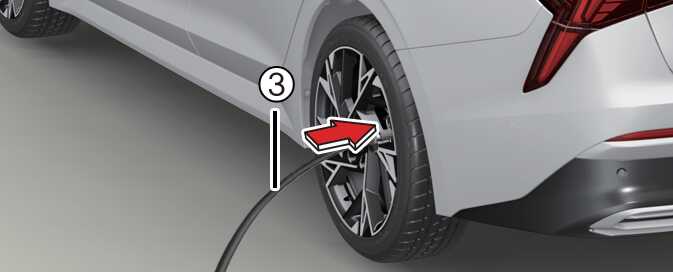 펑크 난 타이어의 밸브에서 밸브 캡을 풀고 실런트(봉합제) 용기에 연결되어 있는 호스(3)를 타이어 밸브에 연결하십시오.