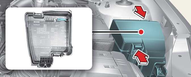 시동 ‘OFF‘ 상태에서 모든 전기 장치 스위치를 끈 후, 엔진룸 퓨즈 박스에 설치된 퓨즈 교체용 클립(퓨즈 뽑개)으로 단선된 퓨즈를 제거하고 같은 용량의 예비 퓨즈를 손으로 단단히 삽입하십시오.