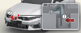 엔진 후드 열림 레버를 당기십시오. 엔진 후드가 조금 열립니다.