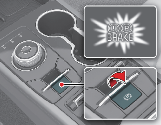 주행 중 브레이크 페달에 문제가 생겼을 경우 전자식 파킹 브레이크(EPB) 스위치를 당겨 비상 제동을 할 수 있습니다. 전자식 파킹 브레이크(EPB) 스위치를 당기고 있는 동안만 제동력이 작동하며, 스위치에서 손을 떼면 제동력은 해제됩니다. 지속적으로 당겨 차량이 정지되는 경우 전자식 파킹 브레이크(EPB)가 체결됩니다.