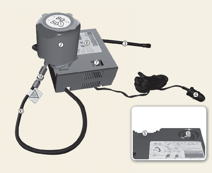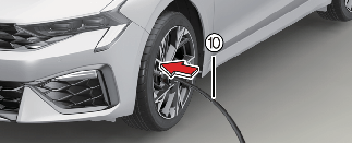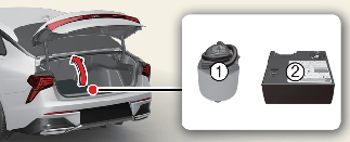 타이어 밸브에 연결된 호스(3)와 실런트(봉합제)에 연결된 호스(10)를 분리하십시오. 사용이 완료된 타이어 임시 수리 장치는 차내 제자리에 보관하십시오.