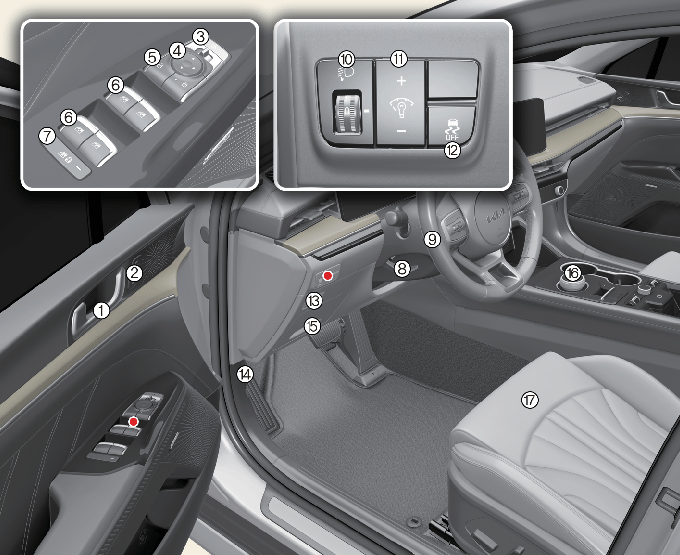 * 본 도안은 실제 차량과 다를 수 있습니다. (스위치의 형상 및 배열은 사양 적용에 따라 달라질 수 있습니다.)