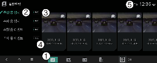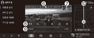 녹화 위치: 내비게이션 지도상에 영상이 녹화된 위치를 표시, 터치하여 원하는 위치로 이동