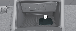 차량 시동이 「ON」 상태에서 등록하려는 카드 키를 실내 인증 패드(무선 충전 패드)(A)에 올려 놓고 인포테인먼트 시스템에서 설정 → 차량 → 디지털 키 → NFC 카드 키 → 등록을 선택하여 카드 키를 등록하십시오.