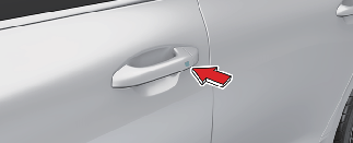 (버튼 타입의 경우) 앞좌석 실외 도어 손잡이에 있는 도어 잠금/잠금 해제 버튼을 누르십시오.