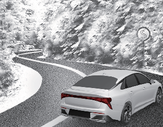 커브가 있는 길을 주행할 때는 브레이크를 밟거나 기어를 변속하지 말고, 미리 속도를 줄인 후, 가능한 한 차체를 똑바로 유지하면서 도십시오.