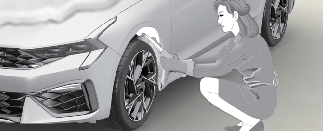 차의 밑부분 둘레에 있는 얼음 덩어리를 부품에 손상을 주지 않도록 주의하면서 제거하십시오.