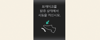 변속할 때 브레이크 페달을 밟지 않으면 표시 창에 경고 메시지가 나타납니다.