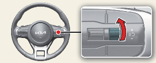 「+」 스위치를 위로 짧게 올릴 때마다 1 km/h씩 속도가 증가합니다.