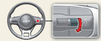 「+」 또는 「-」 스위치를 올리거나 내리면, 현재 주행 속도로 설정 속도가 변경되며 기능이 다시 작동합니다.