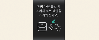 정차 후 약 30초가 지나면 클러스터에 위 그림과 같이 안내문이 표시됩니다. 다시 출발하려면 가속 페달을 밟거나, 「+」 또는 「-」 스위치를 올리거나 내리거나, 「