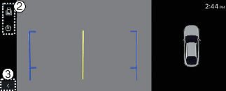 (인포테인먼트 시스템에서 설정 → 차량 → 운전자 보조 → 주차 안전 → 카메라 설정 → 표시 정보 → 후방 주차 가이드라인이 설정된 경우)