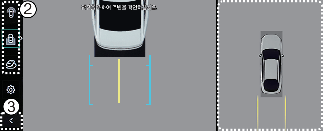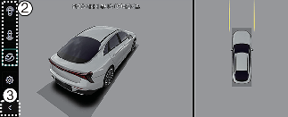 (인포테인먼트 시스템에서 설정 → 차량 → 운전자 보조 → 주차 안전 → 서라운드 뷰 모니터 자동 켜짐이 선택된 경우)