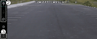 서라운드 뷰 모니터 화면의 뷰 전환 버튼(2)을 눌러 후방 뷰 또는 후방 와이드 뷰를 선택할 수 있습니다.