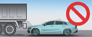 트럭 등 적재함 높이가 높은 대형 차량 주변에서 원격 스마트 주차 보조를 사용하면 접촉 사고가 발생할 수 있습니다. 원격 스마트 주차 보조를 사용하지 말고 직접 주차 또는 출차하십시오.