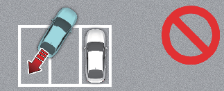 원격 스마트 주차 보조는 사선 주차공간으로 주차 보조를 하지 않습니다. 만약 주차공간에 진입하더라도 정상 작동할 수 없으므로 기능을 사용하지 마십시오.