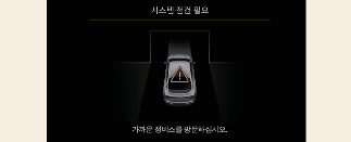 안전한 주차 및 출차에 대한 책임은 운전자에게 있습니다. 주차 및 출차 상황에서 상시 주변을 확인하면서 원격 스마트 주차 보조를 사용하십시오. 다양한 환경 조건에서 차량 주변의 사람, 동물, 다른 차량 또는 물체가 정상적으로 감지되지 않아 제동 제어가 작동하지 않을 수 있으니, 근접한 장애물과의 충돌 우려 시 조작 버튼을 떼어 기능 작동을 중지하십시오.