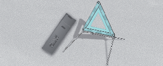 케이스에서 안전삼각대(고장 자동차 정지표지판)를 꺼내 좌/우 날개를 올려 삼각형으로 맞추어 서로 교차되게 연결홈에 고정하십시오.