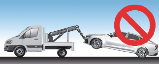 차량 견인 시 반드시 시동을 끄고 견인하십시오. 시동 「ON」 상태에서 차량이 기울어지면 전복으로 감지되어 측면 에어백이 전개될 수 있습니다. (전복 센서 적용 시)