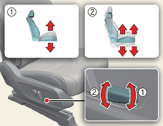 The power seat is driven by an electric motor. Stop operating once the adjustment is completed. Excessive operation may damage the electrical equipment.
