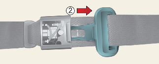 To fasten a 2-point static type belt, insert the metal tab (1) into the locking buckle (2). There will be an audible "click" when the tab locks into the buckle.