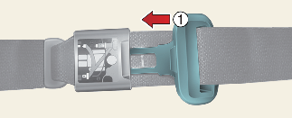 Pull out the mini tongue from hole on the belt assembly cover (1) and then slowly pull the seat belt out from the retractor.
