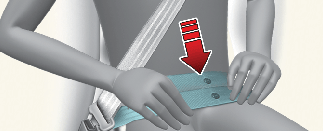 You should place the lap belt portion as low as possible and snugly across your hips, not on your waist. If the lap belt is located too high on your waist, it may increase the chance of injury in the event of a collision. Both arms should not be under or over the belt. Rather, one should be over and the other under, as shown in the illustration.