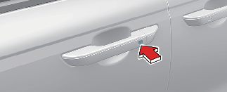 Pressing the button of the front door handles with all doors closed and any door unlocked, locks all the doors. If all doors and engine bonnet are closed, the hazard warning lights will blink once to indicate that all doors are locked.