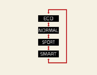 The driving mode automatically changes to SMART ECO, when you abruptly accelerate the vehicle or repetitively operate the steering wheel. (Your driving is categorized to be sporty.) In this mode, your vehicle drives in a lower gear for abrupt accelerating/decelerating and increases the engine brake performance.