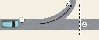 When the vehicle's driving route is recognised as the main road by maintaining the main road instead of the navigation set route, Highway Curve Zone Auto Slowdown function will operate. Depending on the distance to the curve and the current vehicle speed, vehicle deceleration may not be sufficient or may decelerate rapidly.
