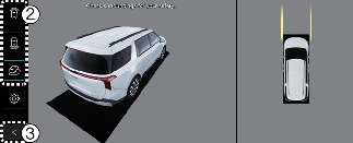 3D view function shows the vehicle in various angles. Press the 3D view icon on the Surround View Monitor screen to choose the angle. Press the 3D view icon again to reset the angle.