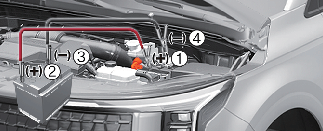 Do not allow the (+) and (-) jumper cables to touch. It may cause sparks.