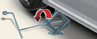 Insert the jack handle into the jack and turn it clockwise, raising the vehicle until the tyre just clears the ground. This measurement is approximately 30 mm (1.2 in). Before removing the wheel lug nuts, make sure the vehicle is stable and that there is no chance for movement or slippage.