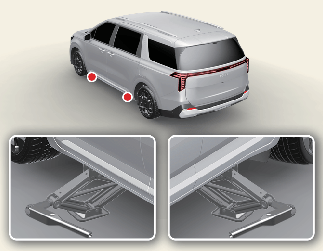 To reduce the possibility of injury, be sure to use only the jack provided with the vehicle and in the correct jack position; never use any other part of the vehicle for jack support.