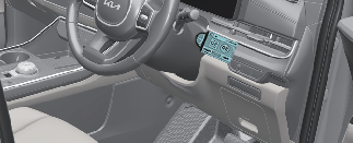 CAUTIONDo not connect another vehicle's Tyre Mobility Kit (TMK) to the power outlet. The unmatched power requirement between the vehicle power outlet and the tyre mobility kit can cause fire or circuit damage within the vehicle and the Tyre Mobility Kit.