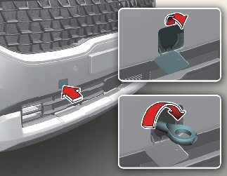 Install the towing hook by turning it clockwise into the hole until it is fully secured.