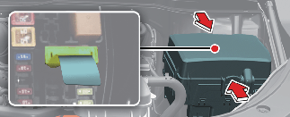 엔진룸(퓨즈/릴레이 박스) 내 퓨즈 교체 시 하이브리드 파워 컨트롤 유닛(HPCU) 장치에 주의하십시오.