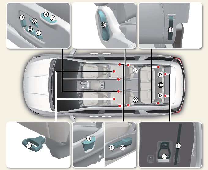 * 레버/스위치/버튼의 형상 및 배열은 적용된 사양에 따라 다를 수 있습니다.