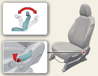 시트에 앉은 상태에서 등을 앞으로 약간 숙이고, 시트 바깥쪽에 위치한 리클라이닝 레버를 위로 당기십시오.